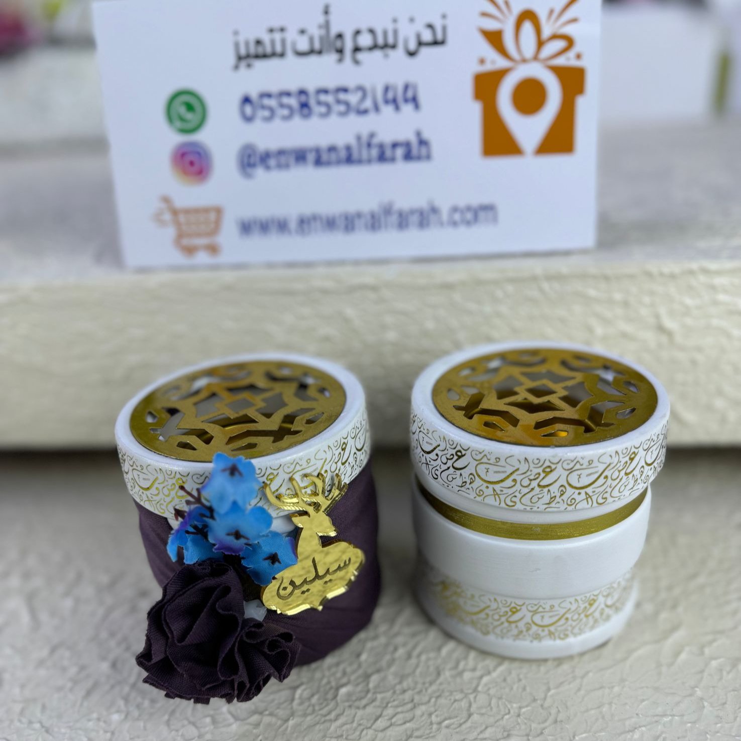 مباخر احرف عربية مع تنسيق قماش وورد ولوجو بالاسم حسب الطلب