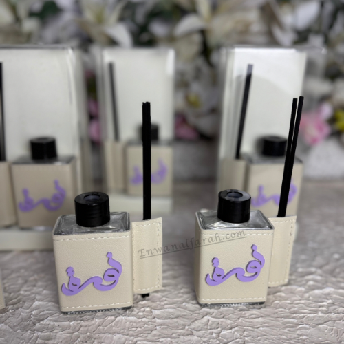 أضف لمسة من الأناقة والعبير إلى مناسباتك مع فواحات الجلد الفاخرة من "عنوان الفرح". تتميز هذه الفواحات بجلدها الطبيعي ورائحة اللافندر الهادئة التي تبعث على الاسترخاء. يمكنك تخصيص كل فواحة باسم ثلاثي الأبعاد ليضفي عليها لمسة شخصية فريدة. مثالية كهدية تذكارية أنيقة أو توزيعات مميزة في حفلات الزفاف، وأعياد الميلاد، والمناسبات الأخرى.