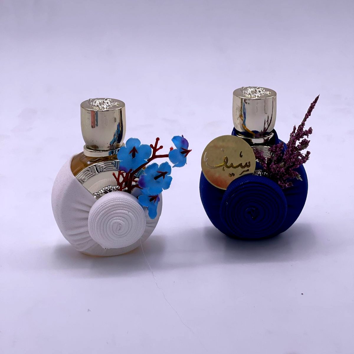 عطر مني مع تنسيق قماش وورد ولوجو بالاسم حسب الطلب
