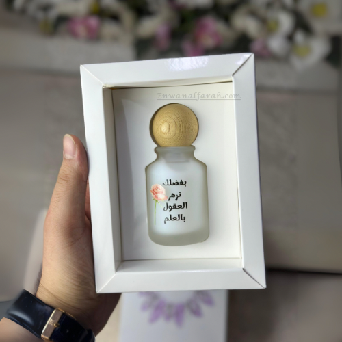 • رسالة تقدير مخصصة: يتم طباعة رسائل الشكر والثناء للمعلمين (كما تظهر في الصور: "بفضلك تزدهر العقول بالعلم" أو عبارة من اختيارك) بتقنية UV المتطورة مباشرة على العلبة الخارجية وعلى زجاجة العطر لضمان دقة الألوان وثباتها.